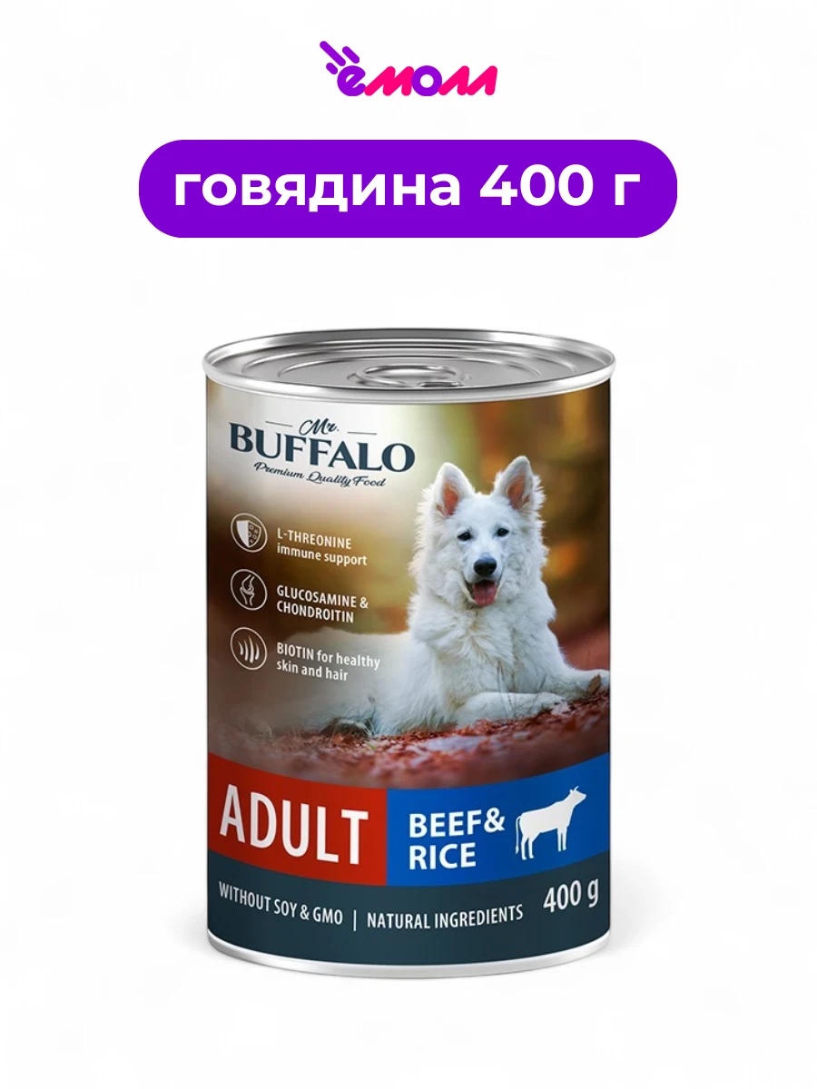 Mr.Buffalo консервированный корм для взрослых собак говядина с рисом 400 г