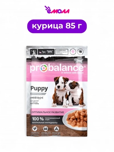 Самостоятельная жизнь питомца начинается с правильно подобранной еды. Консервированный корм для щенков Probalance помогает вырастить здоровую сильную собаку.