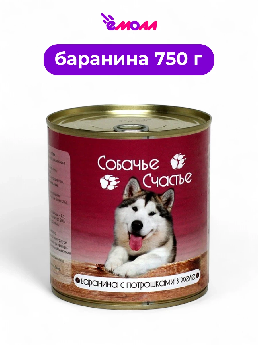Собачье счастье консервированный корм для собак баранина с потрошками в желе 750 г