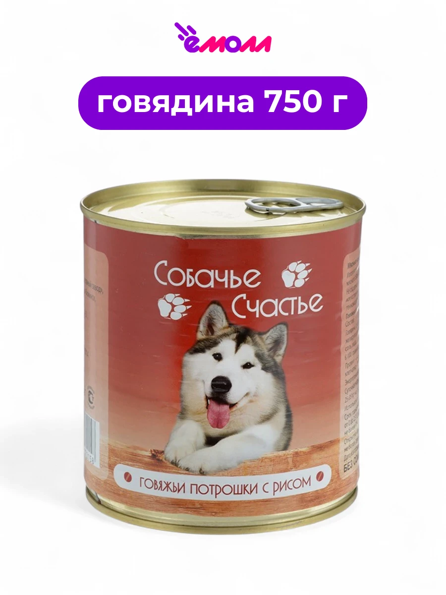 Собачье Счастье консервированный корм для собак говяжьи потрошки с рисом в желе 750 г