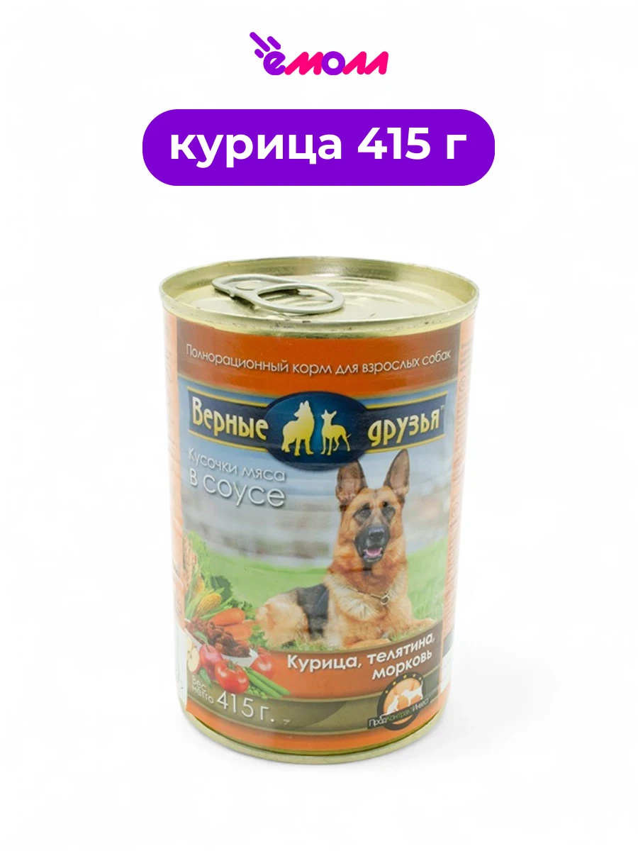 Верные друзья консервированный корм для собак курица и телятина с морковью в соусе 415 г