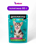Вкусмясина корм для щенков кусочки с телятиной в соусе 85 г