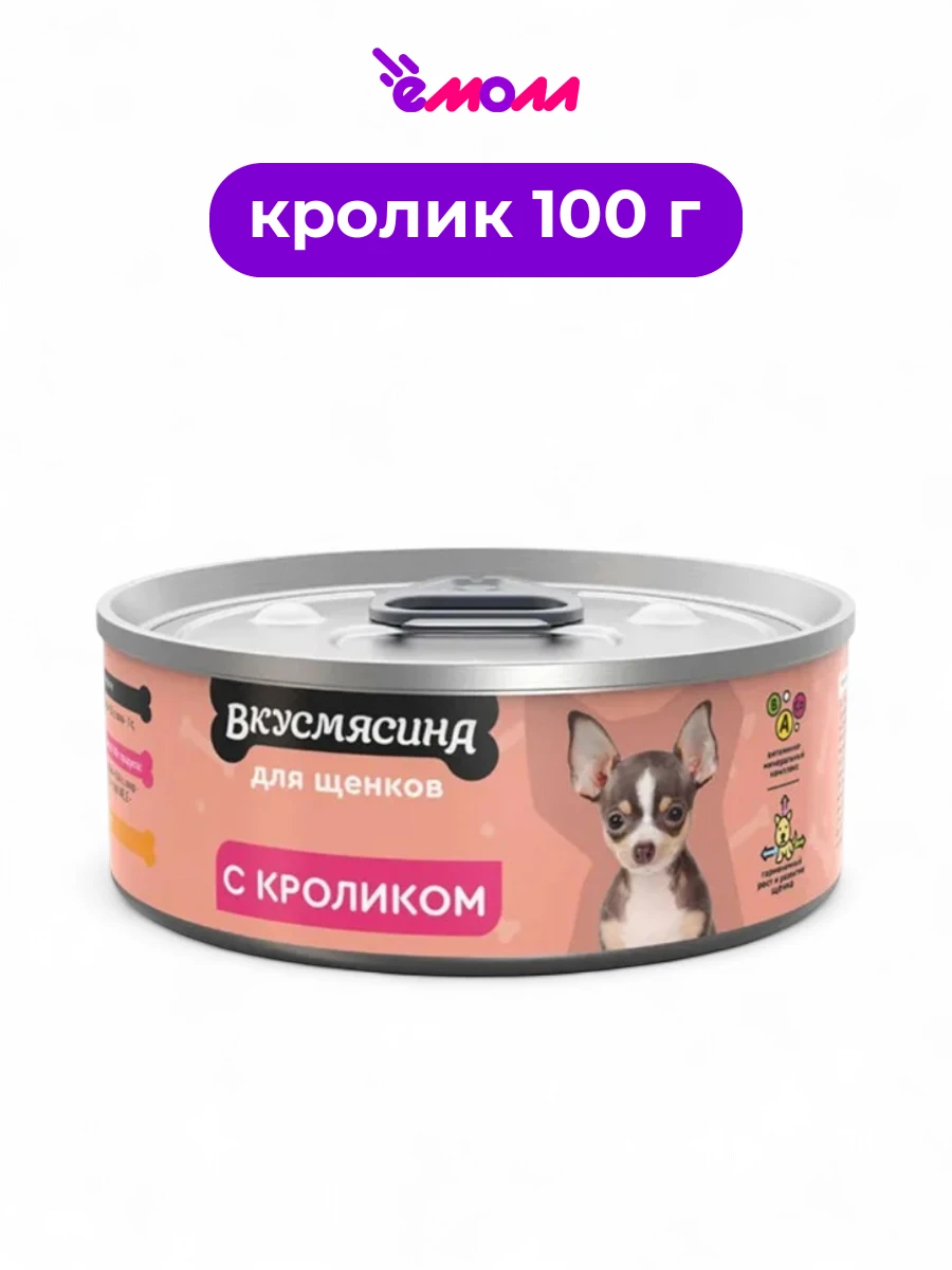 Влажный корм ВКУСМЯСИНА с кроликом разработан специально для щенков всех пород. Его сбалансированный состав обеспечивает питомца всеми необходимыми питательными веществами для здорового роста и развития.