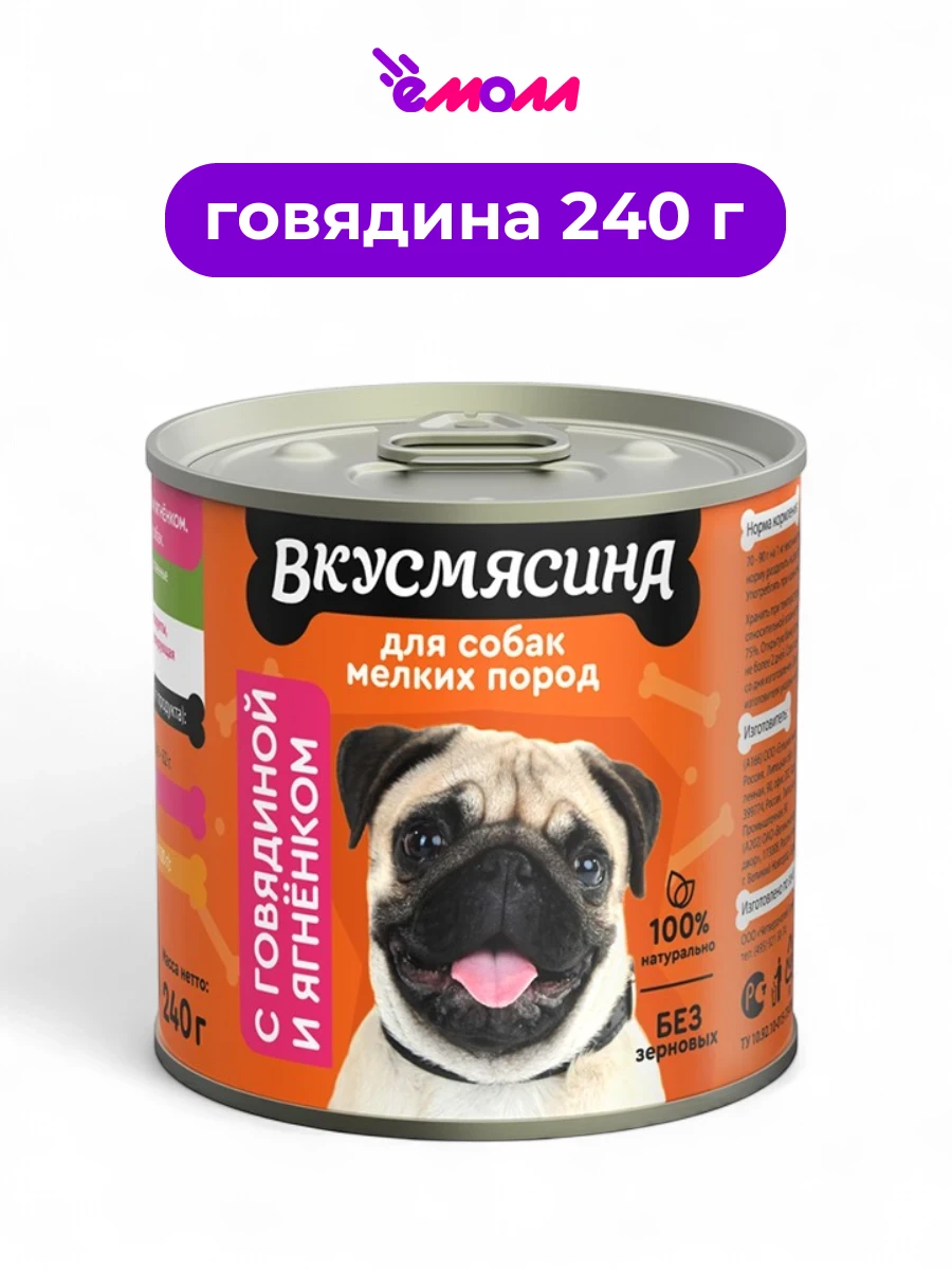 Вкусмясина мясное рагу для собак мелких пород с говядиной и ягненком 240 г