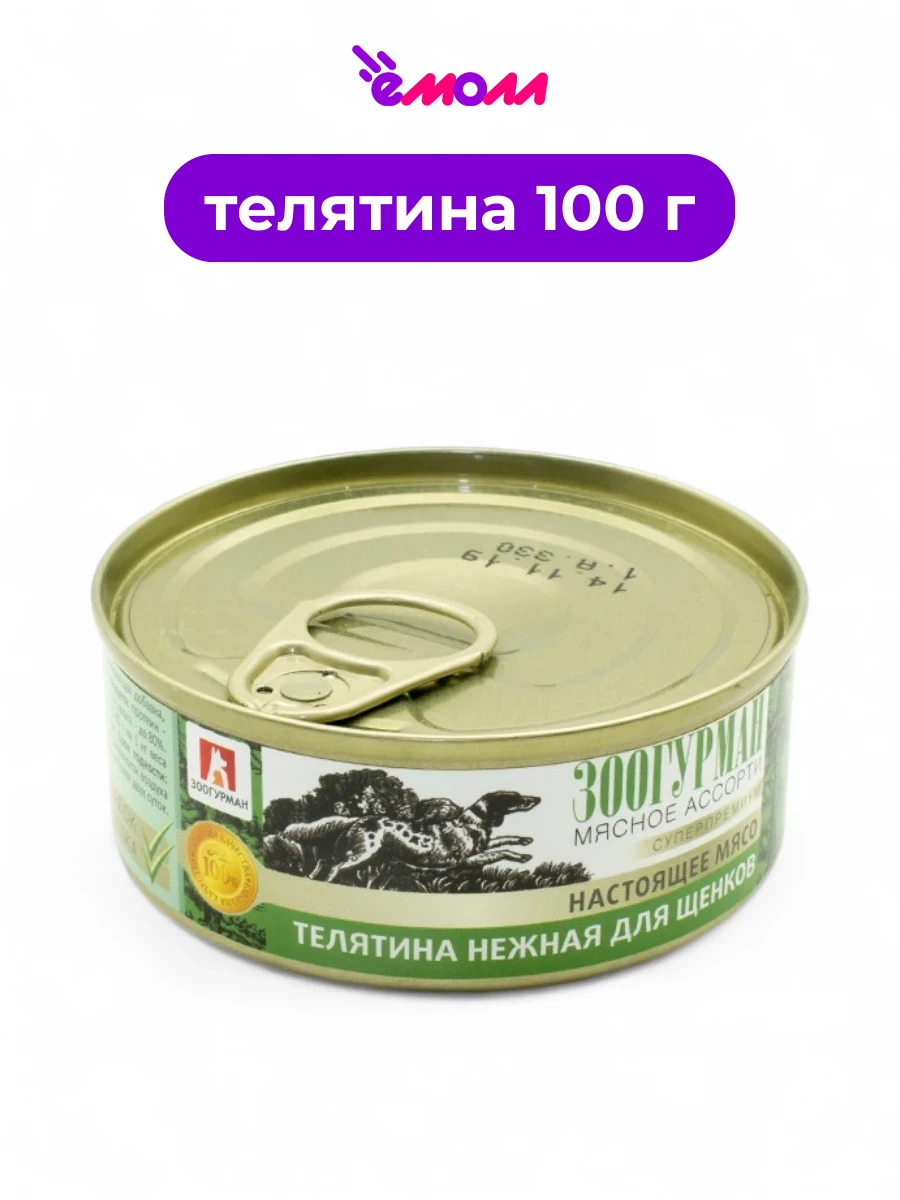 Зоогурман консервированный корм для щенков мясное ассорти нежная телятина 100 г