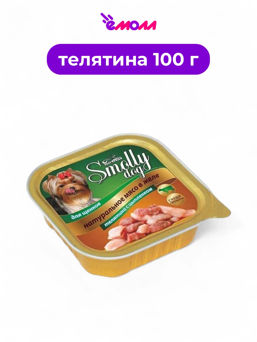 Зоогурман консервированный корм для щенков Smolly Dog телятина с цыпленком 100 г