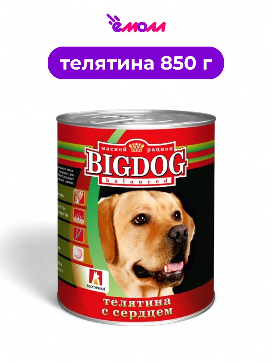 Зоогурман консервированный корм для собак BIG DOG телятина с сердцем 850 г