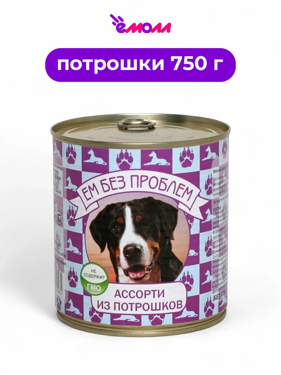 Зоогурман консервированный корм для собак ЕМ БЕЗ ПРОБЛЕМ ассорти из потрошков 750 г
