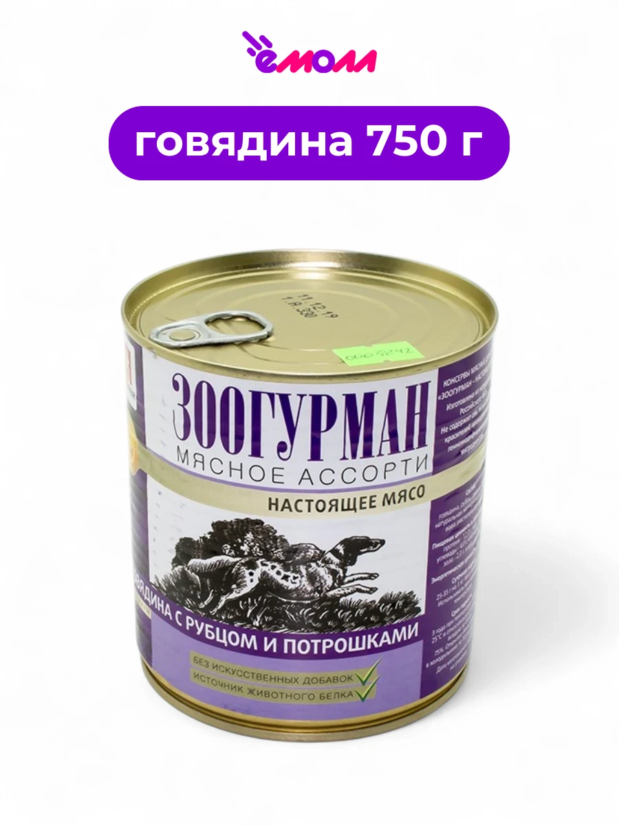 Зоогурман консервированный корм для собак мясное ассорти говядина рубец потрошка 750 г