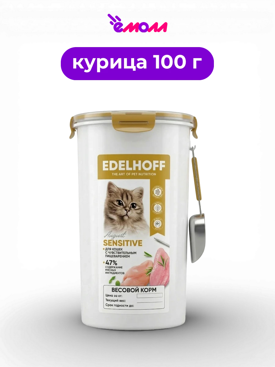 Edelhoff сухой корм на развес для кошек с чувствительным пищеварением курица индейка 100 г