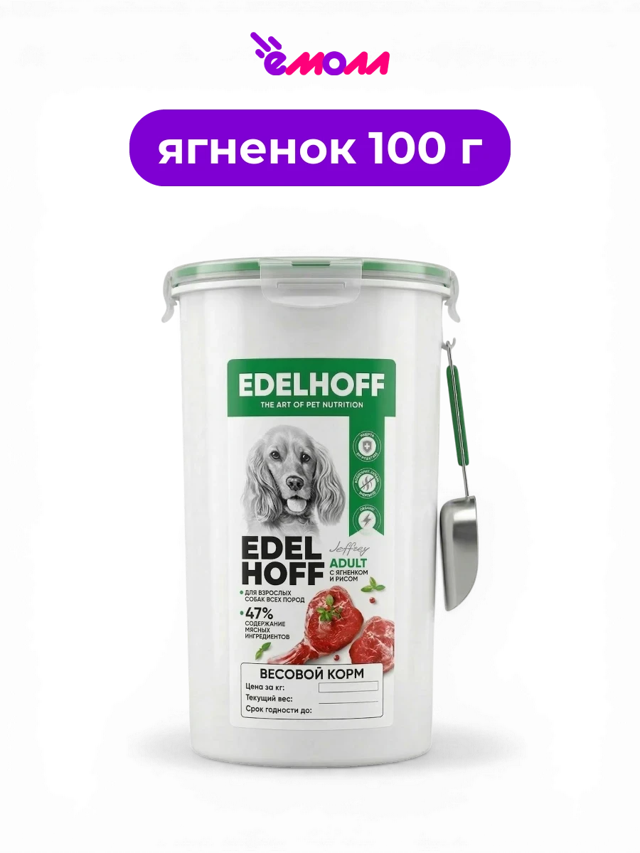 Edelhoff сухой корм на развес для собак всех пород ягненок рис 100 г